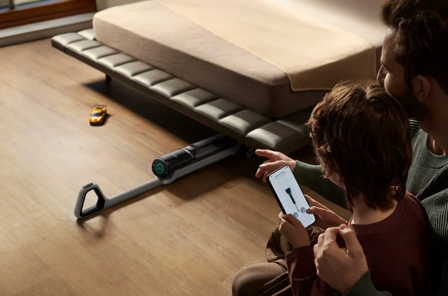 В приложение можно руководить устройством как роботом-пылесосом для уборки в труднодоступных местах. Ручка модели наклоняется на 180°.