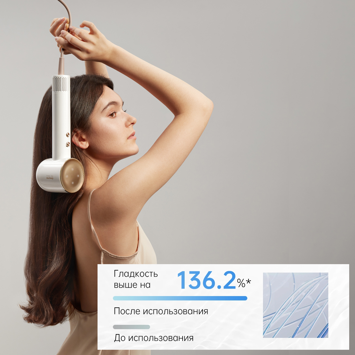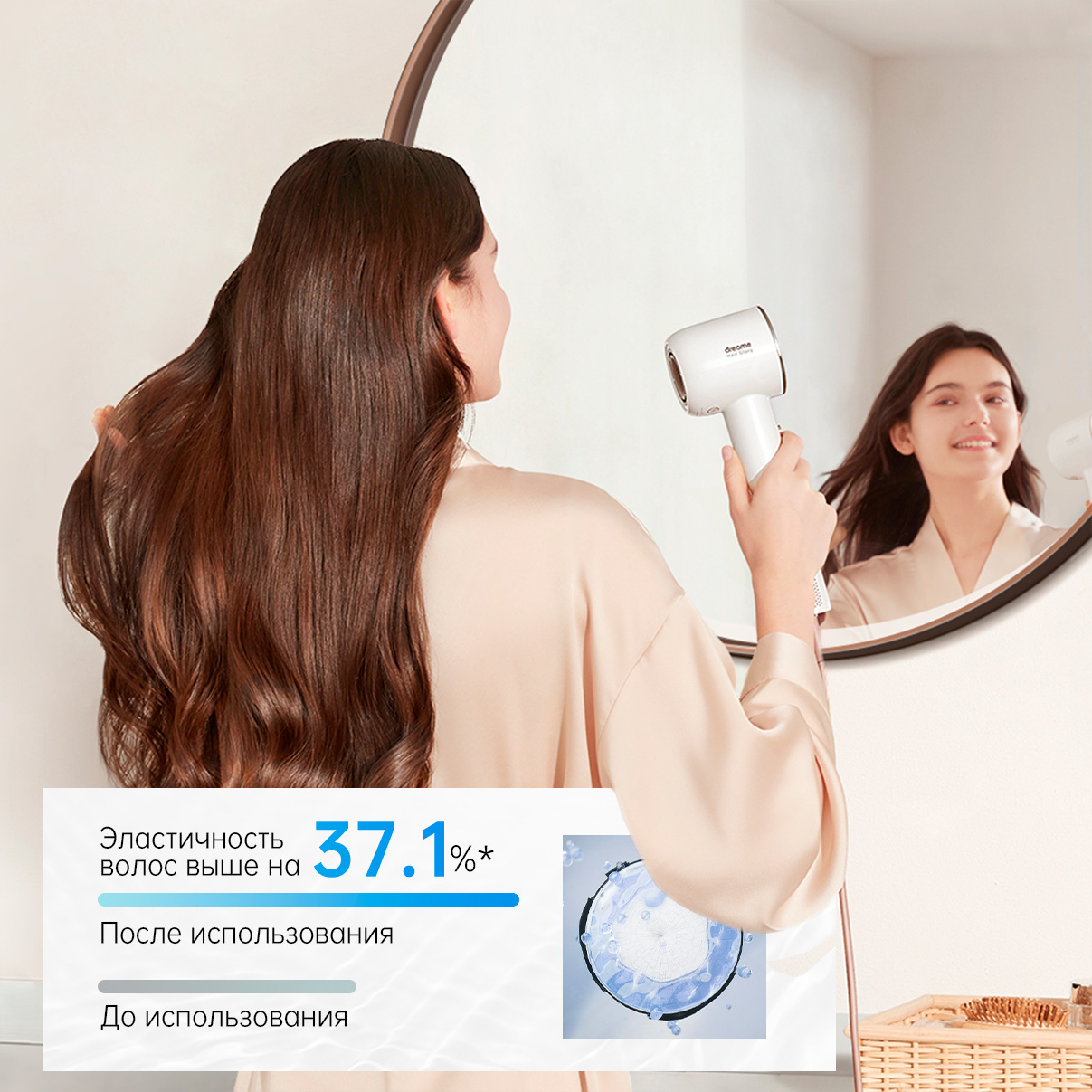 Моментально упругие и сияющие волосы.